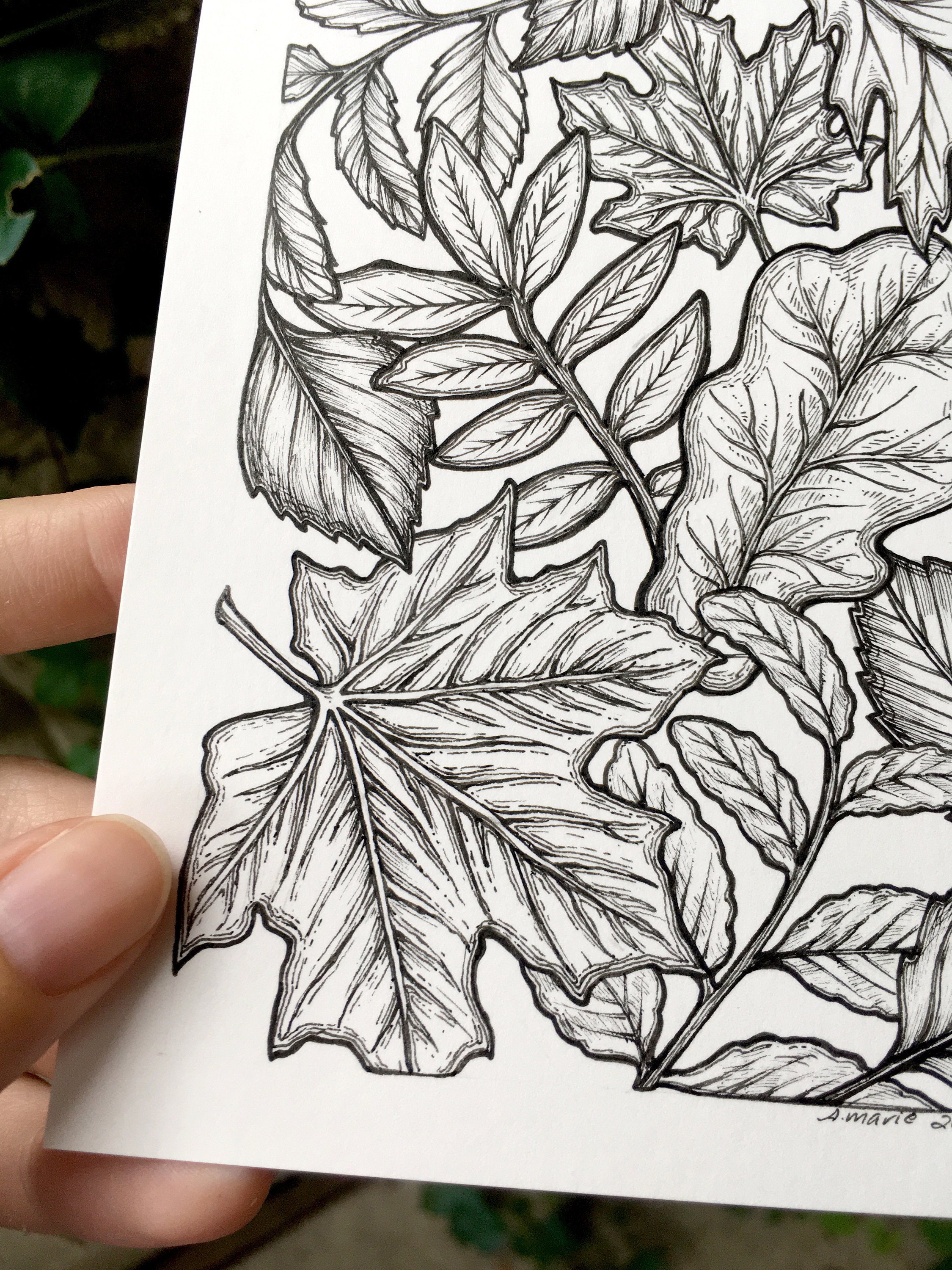 Original Pen And Ink Drawing Of Fall Leaves Black And White Etsy Uk